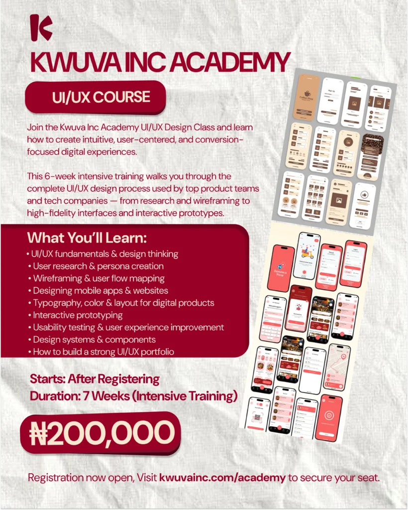 Take your design skills to the next level with our 7-week immersive training available in-person in Jaba, Kano State, Nigeria or online from anywhere in the world.