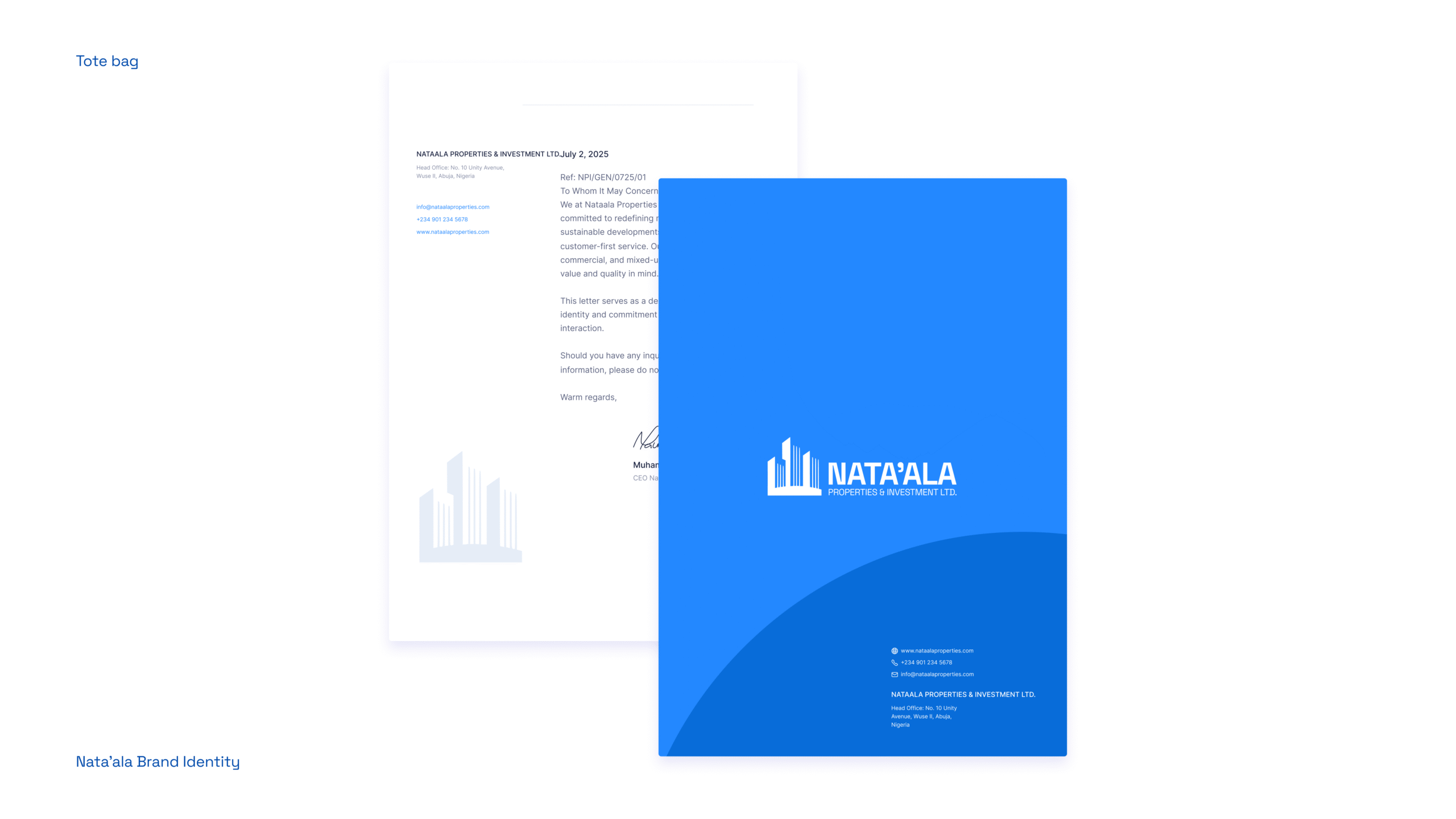 “We developed a modern and trustworthy brand identity for Nata’ala Properties Limited, a real estate company focused on quality, integrity, and long-term value. Our goal was to build an identity that reflects the company’s reliability and strong presence in the property market.